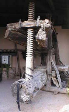 Elle faisait descendre un tronc d'arbre qui écrasait les raisins, le jus coulait dans une goulotte,